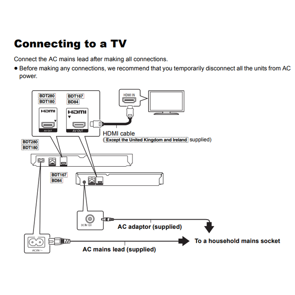 | WARNING | The recording and playback of content on this or any other device may require permission from the owner of the copyright or other such rights in that content. Panasonic has no authority to and does not grant you that permission and explicitly disclaims any right, ability or intention to obtain such permission on your behalf. It is your responsibility to ensure that your use of this or any other device complies with applicable copyright legislation in your country. Please refer to that legislation for more information on the relevant laws and regulations involved or contact the owner of the rights in the content you wish to record or playback. Playability may vary depending on the contents, discs and quality of the recording. For content recorded for your personal use. Specifications are subject to change without notice. |