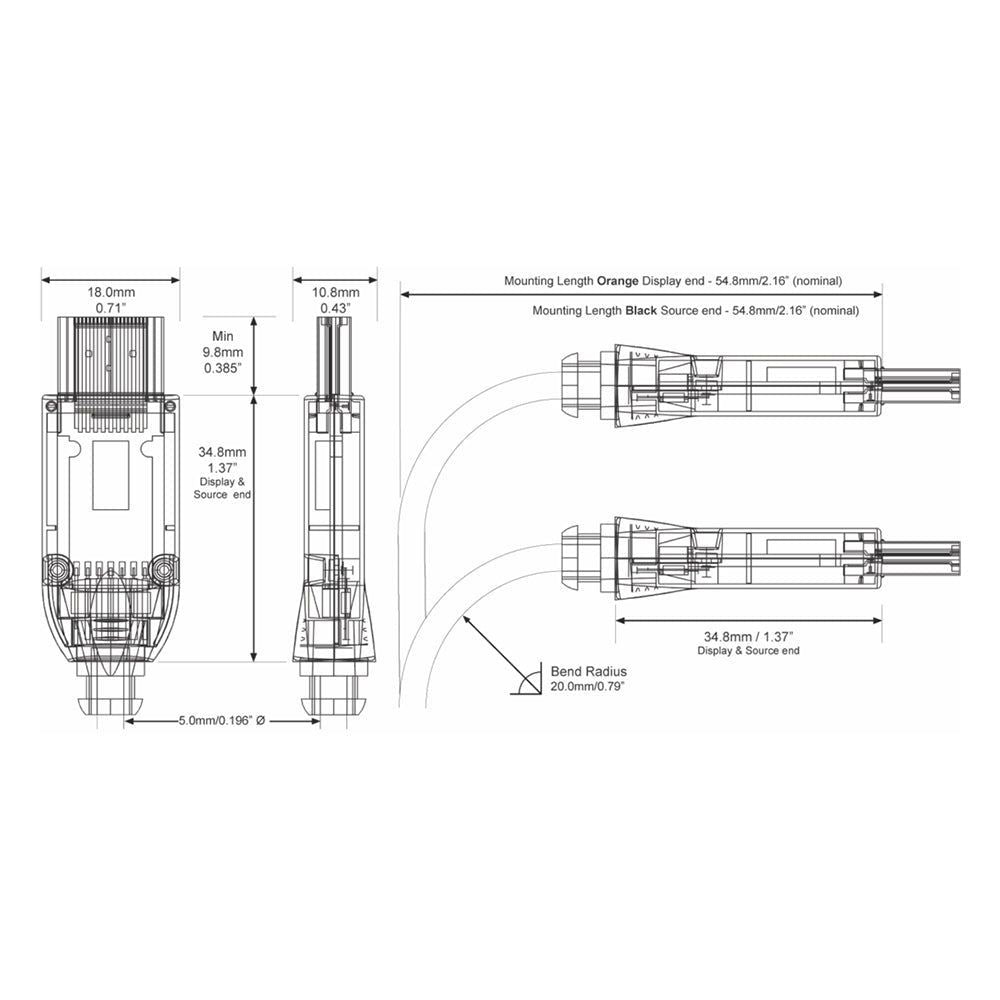 Cable Bend Radius: 20.0mm/0.78”