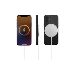 MB3674 1 Year Warranty This wireless charging pad features a magnetic charging array for easy inductive coil alignment. Charge your mobile or any wireless-enabled device rapidly with up to 15W of charging power when paired with a high output USB charger. Compatible with MagSafe® supported Apple devices or Android using the included ring magnet. It features a strong and sleek Aluminium body with a built-in USB-C charging cable.Specifications:Input: 5VDC @ 2A, 9VDC @ 2A, 12VDC @ 2AVoltage Output: 5VDC, 9VDCCurrent Output: 5V @ 1A (5W)                        9V @ 0.8A (7.5W)                        9V @ 1.1A (10W)                        9V @ 1.67A (15W)Output Power: 5W/7.5W/10W/15WCharging Efficiency: 73% (Max)Charging Distance: ?8mmDimensions: 55(Dia) x 5(H)mm