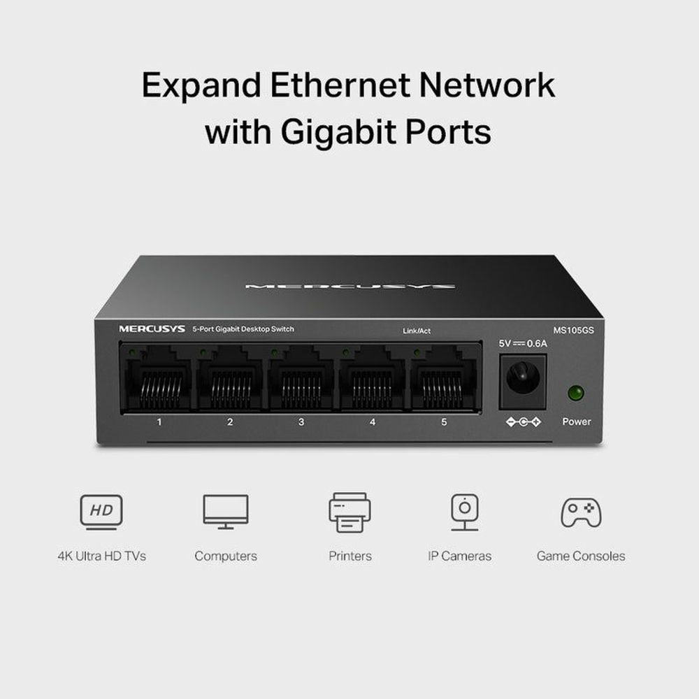 HeadingMER-MS105GS - Mercusys MS105GS 5-Port Gigabit Desktop Switch